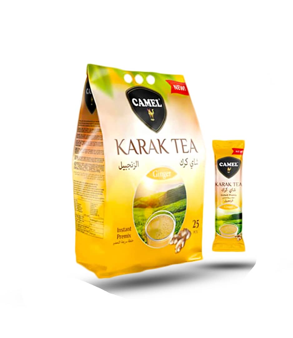 چای کرک کمل با طعم زنجبیل- ترکیبات:شکر، خامه غیر لبنی (شربت گلوکز جامد، روغن نارگیل هیدروژنه، تثبیت کننده E340، کازئینات سدیم، امولسیفایر E471، عامل جریان آزاد E551)، پودر شیر بدون چربی، ماده ضد لک E551i و چای فوری.